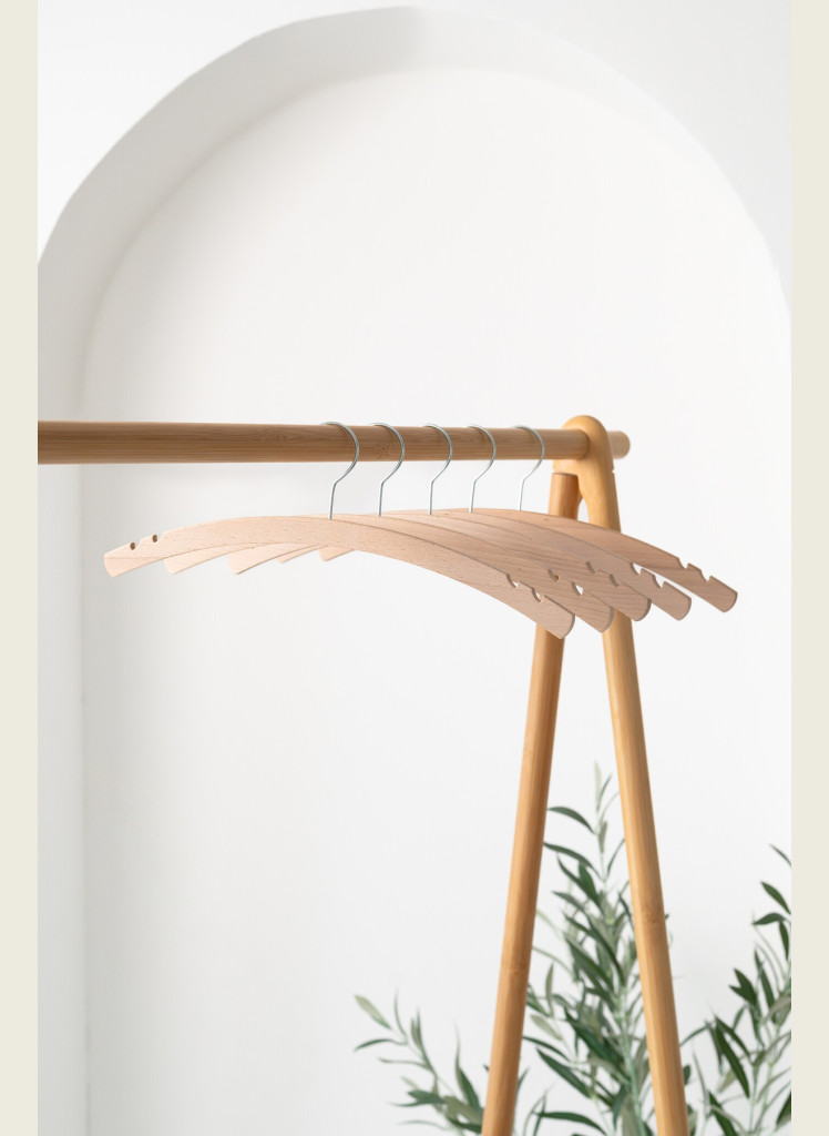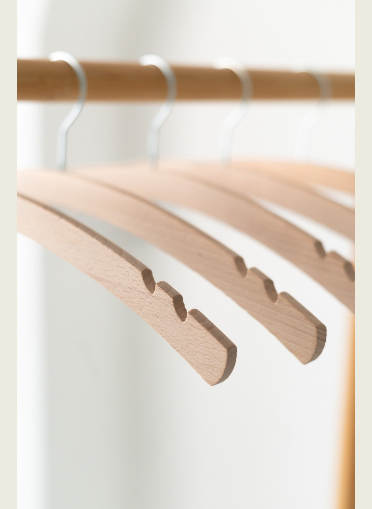 Kvalitní bukové ramínko se dvěma bočními zářezy, které je ideální pro trička, halenky, šaty na ramínka. Jemně zaoblený tvar pomáhá držet správný tvar oděvů a zároveň šetří místo ve skříni. Zářezy jsou praktické zejména pro šaty nebo topy na ramínka, které na běžném ramínku snadno sklouzávají.