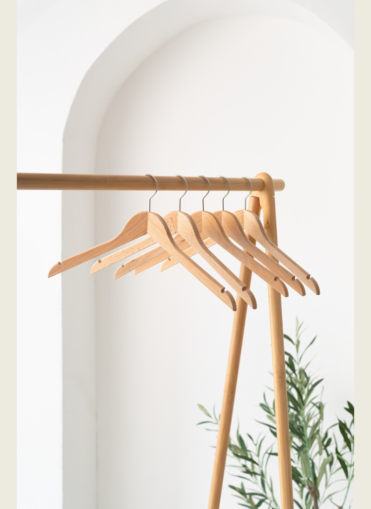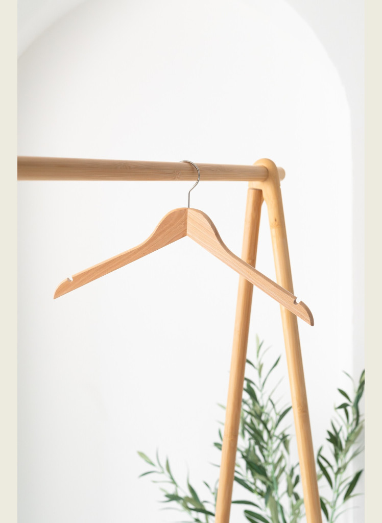 Praktické bukové ramínko s tvarovanými rameny a bočními zářezy, které je vhodné pro saka, bundy, kabáty i oděvy s ramínky. Zakulacená horní část u háčku plynule navazuje na tvar ramen a podporuje elegantní vzhled ramínka.